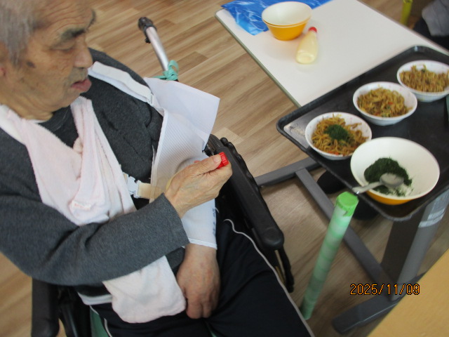 3階 手作りおやつ 0811.01.20 🥢焼きそば作り🥢 今回の手作りおやつは、屋台も手作り!焼きそば作りです! 手作りの焼きそばにマヨネーズ・青のり・紅ショウガをトッピング☆ 皆さん美味しく食べられていました🎵 一覧に戻る
