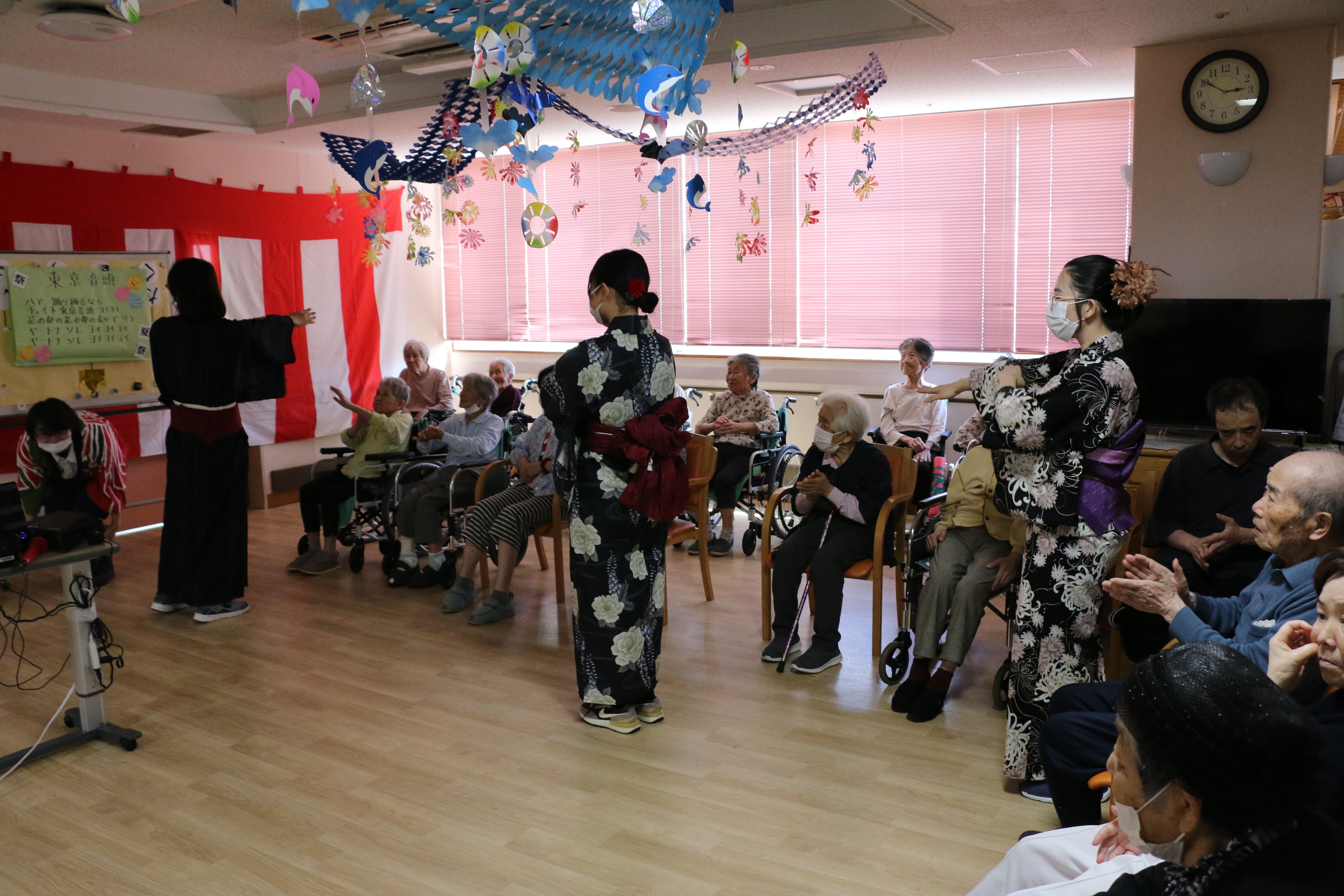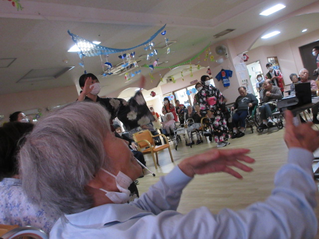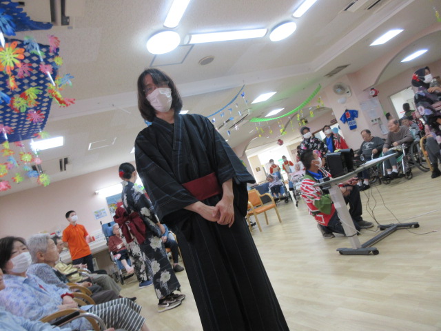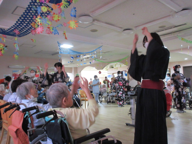 この日の為に利用者様も職員も練習しました!! 職員は浴衣を着て踊りました(*‘∀‘)