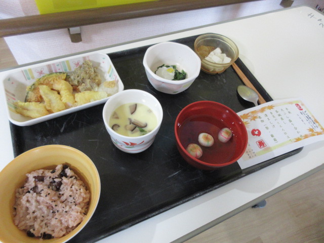 2階 敬老会~昼食編~ 2025.10.03 🍂敬老会~昼食編~🍂 敬老会2階の様子~昼食編~をお届けします 今日は敬老の日のお祝いです🎊 お赤飯・天ぷら・茶碗蒸しと皆さんが大好きなメニューがいっぱい💕 デザートには梨と葡萄もあり、秋の味覚を味わいました🍇 一覧に戻る