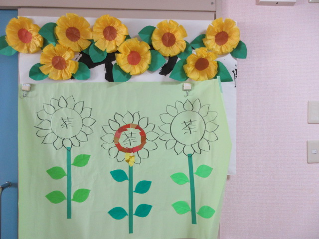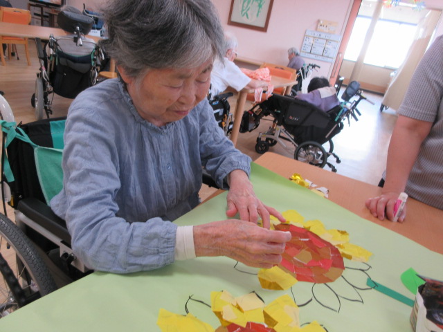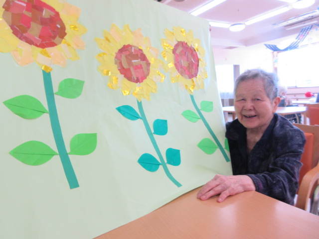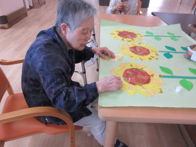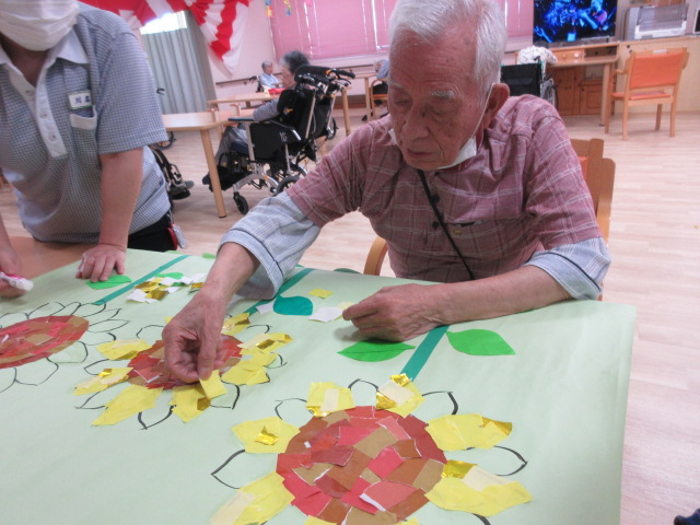 今月の貼り絵はひまわり🌻 下書きを職員で書いて、その後は利用者様にお手伝いして頂きます!!