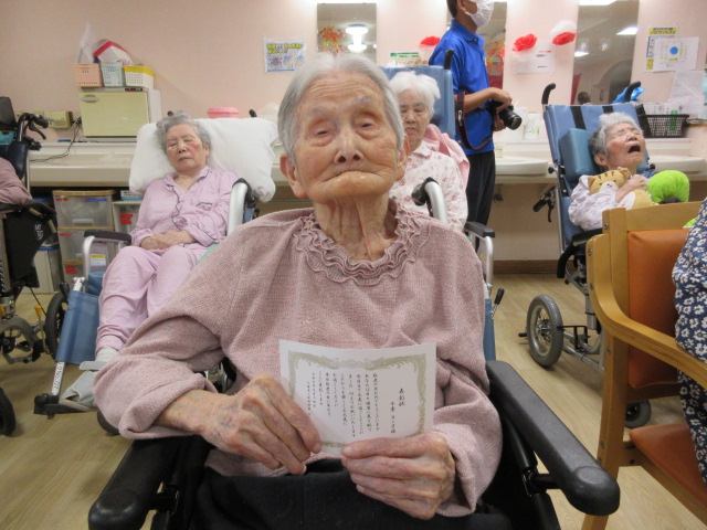 利用者様一人一人には、長寿お祝いの表彰状をプレゼント🎁