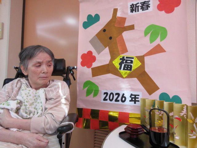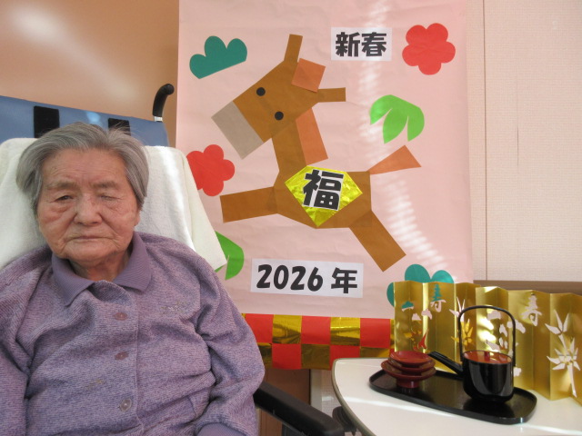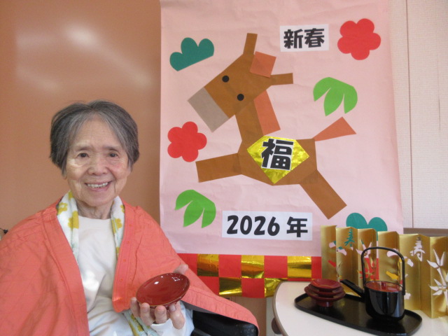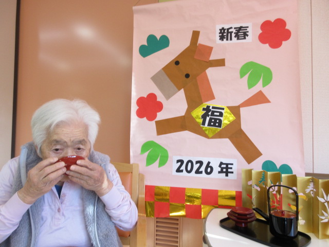 2階 お屠蘇 2026.01.01 お屠蘇🎍 新年明けましておめでとうございます! 本年もよろしくお願い致します!! お正月行事、一発目は『お屠蘇』 中身はお酒ではなく、、、 みりんを使っております👍 職員お手製のお正月飾りと記念撮影を行いました🐴 一覧に戻る