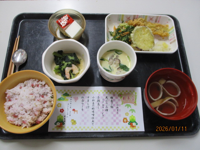 3階 新年会~昼食編~ 2026.01.07 🎍新年会~昼食編~🎍 3階新年会~昼食編~をお届けします! 天ぷら・茶碗蒸し・紅白ケーキ等のメニューを皆さん美味しく食べられていました(*^-^*) 一覧に戻る