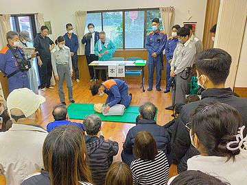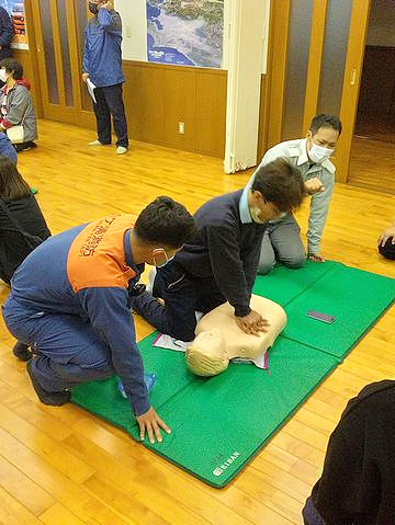生憎の悪天候で急遽、屋内開催となりましたが、前回のテントや簡易トイレ設置体験ではなく、救急救命講習を受けるなど、継続参加の意義がある貴重な時間でした。