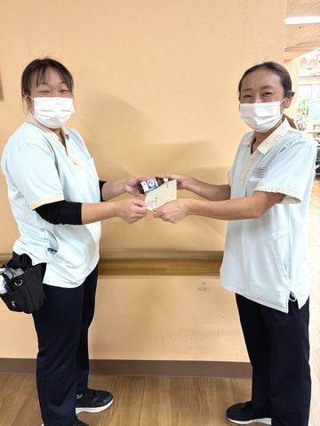 所属長もしくは総務部長から金一封と記念品が贈られました。